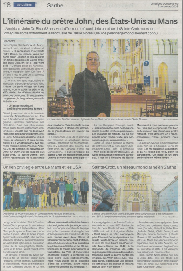 An article on Father John De Riso in the newspaper Ouest-France (November 9, 2025) 14 Nov 2025 | News