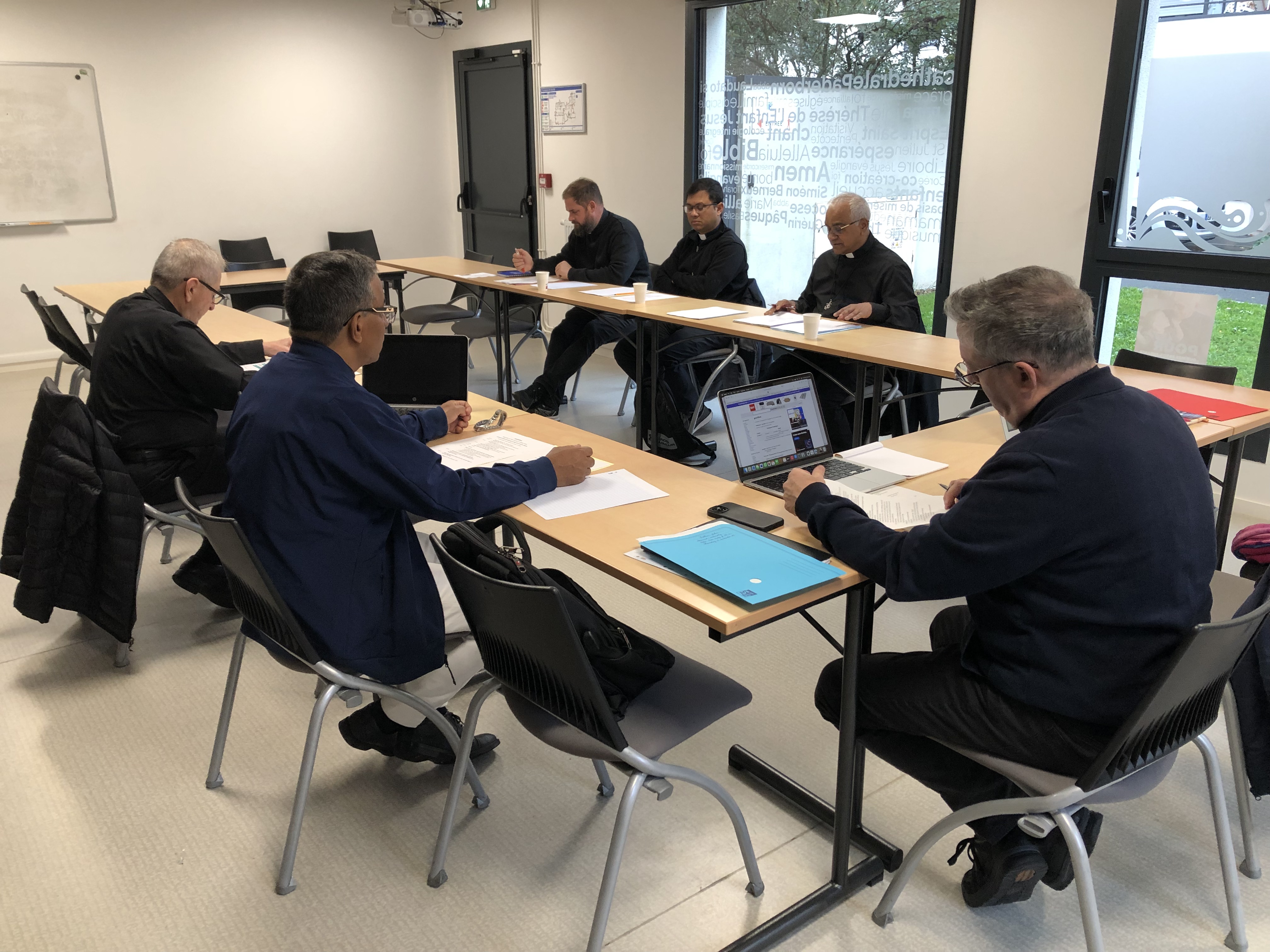 The members of the Association Notre-Dame de Sainte-Croix, Father Emmanuel Kallarackal, CSC, president, Father Jack Ryan, CSC, treasurer, Father Paul Valentin, CSC, secretary, Brother Prodip Gomes, CSC, and Father John De Riso, CSC, met on Thursday, November 6 at the Maison Saint-Julien for the general assembly of the association. Also present were Father Joseph Gansalvez, CSC, and Mrs. Tiphaine Hamerel. In the morning took place the financial assessments and the legal approval, and in the afternoon the presentation of the progress of the works for the presbytery, in the presence of the architect, Mr. Delaroux, as well as the presentation of the activities of the shrine and the parish.