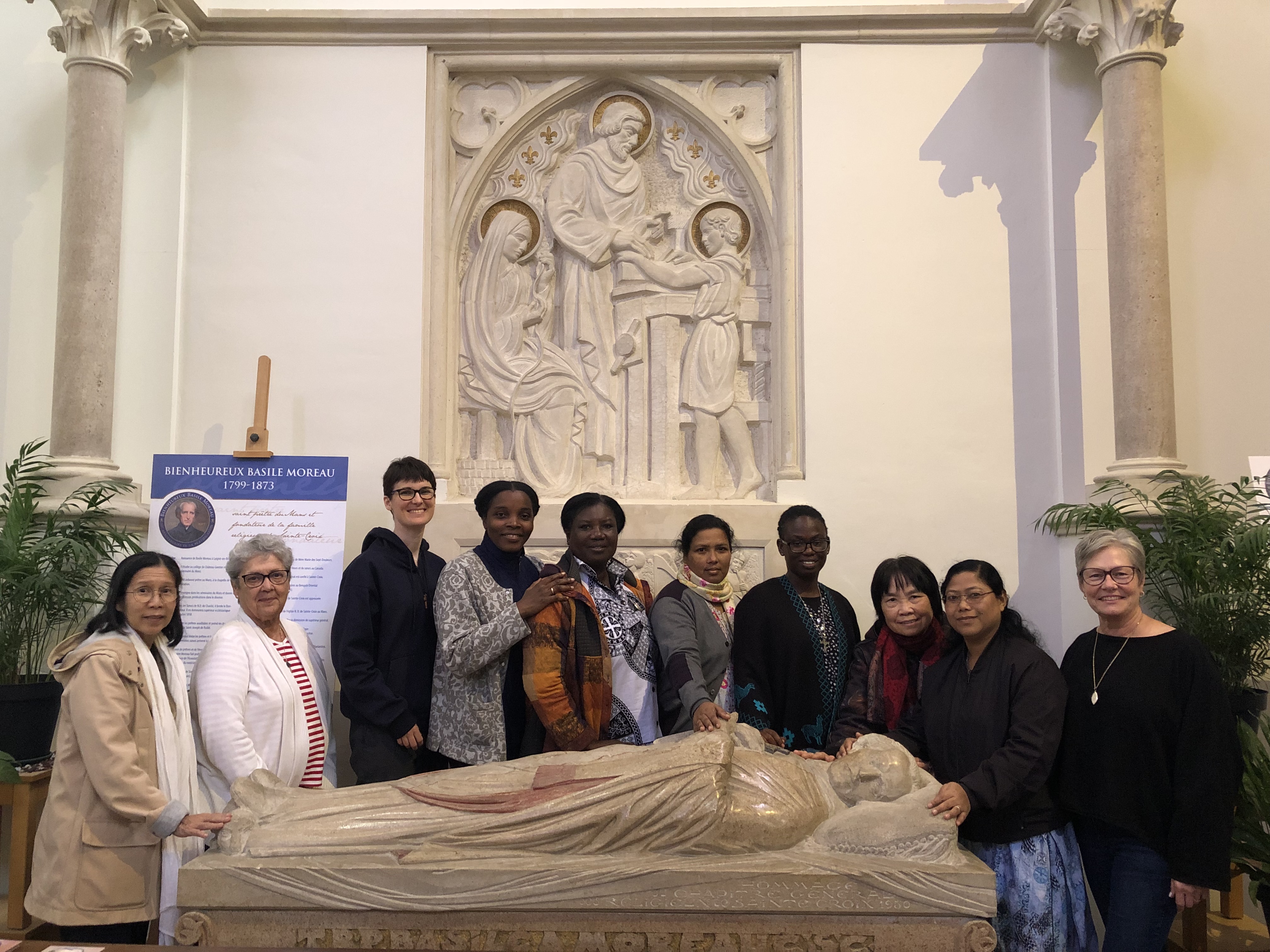 Eight Holy Cross women coming from Haiti, Ghana, Bangladesh, Canada, Vietnam and Peru, gathered at the Solitude with Sr. Ann Lacour and Sr. Renée Daigle to discern their becoming part of a Welcoming Community as the Family of Holy Cross journeys in creating a Pilgrimage Center in collaboration with the Shrine of Blessed Basile Moreau. On Tuesday 24 September, they came to the Shrine for a guided tour.